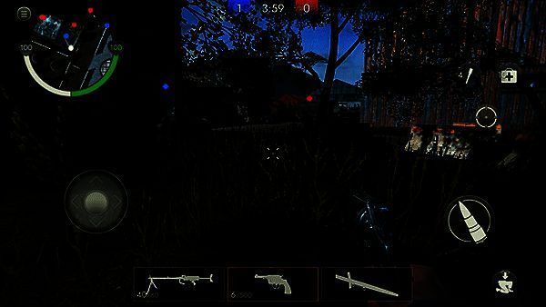 4、屏幕下方代表可以切换的武器,右边有手榴弹以及治疗包,玩家可以合理的运用这些武器