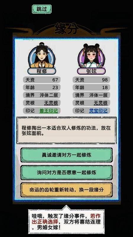 1. 玩家可以沉浸在充满惊喜的修仙游戏世界中,迎接不同类型随机事件带来的挑战。