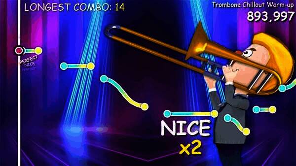 《长号冠军》是一款音乐节奏类休闲游戏,玩家在游戏里化身为长号演奏者,通过吹奏长号来演绎各类音乐。游戏内有超20首曲目,风格多样,包括国歌、进行曲、古典乐曲、电子乐、民间经典等,且每首曲目都配有独特的动画背景,会随音乐移动。玩家可通过上下滑动匹配音符音高,用鼠标或控制器操作,还有自动和手动两种模式可选。