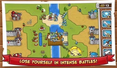 每个阵营有九个兵种(含农夫),除初始的农夫、步兵、射手、骑士外,其他兵种需在游戏中解锁并用红宝石购买。兵种能力不同且有三星级,可用红宝石升级。红宝石是唯一货币,胜利可得。每次游戏选上场兵种不超五个。出兵要对准目标,同时持续采伐资源保证资金。关卡前可自由搭配兵种并升级。