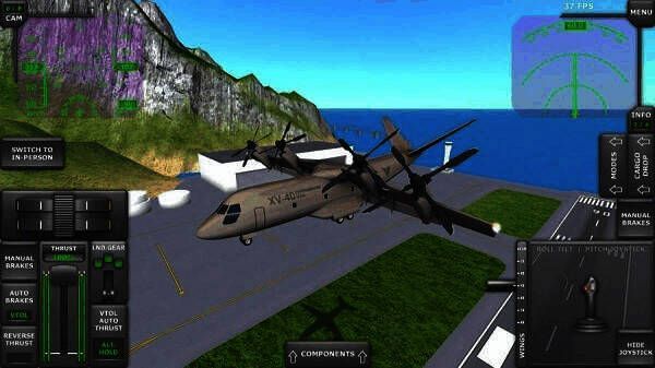 6.驾驶带有倾斜机翼的垂直起降飞机(在飞行模式和垂直直升机模式下);