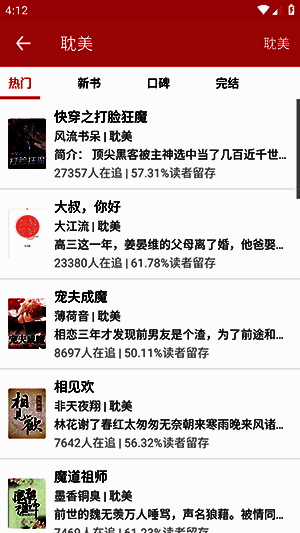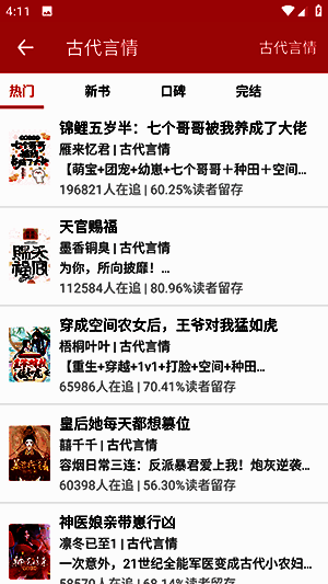 1. APP首页有各种小说推荐,也能在搜索框输入关键词找书。