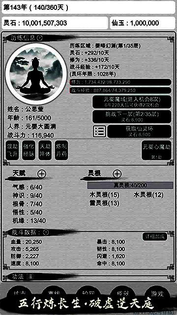 【天赋系统】游戏天赋包括气感、神识、根骨、悟性、机缘等,不同数据影响修炼。