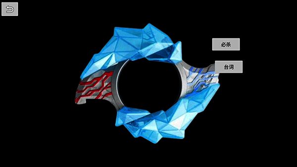 5、变身时,中间水晶展开露出显示屏,有红色和蓝色圆圈旋转,不同晶石特效不同。