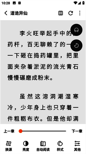 3. 界面和操作人性化,便于浏览目录、切换章节、调整字体大小等。