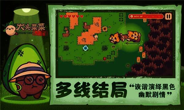 《大头菜菜历险记》是一款可爱风格的像素冒险游戏。玩家将扮演Q萌大头菜,因未及时交租被驱逐,从而开启刺激的还债冒险之旅。在游戏里,玩家可收集工具解谜,与猪王、腐烂苹果猫战斗,还能邂逅奇奇怪怪的蔬果,和古灵精怪的居民对话,赢取可爱帽子装饰。在这奇妙世界中收集工具,以奇思妙想解开谜题,探索蔬菜城底层秘密。