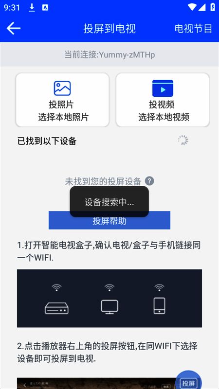 3、软件支持投屏功能,在同一网络下可检测到投屏设备。