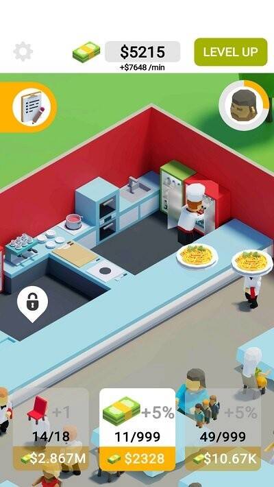 - 游戏进程中逐步解锁新城市区域、餐厅设施、厨房设备及高级菜品。