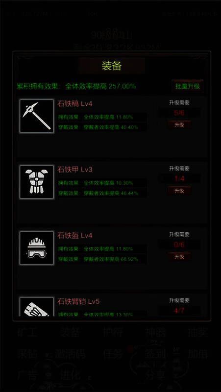 3、升级系统:通过积累资金,可以升级工具和设备,提高采矿效率,解锁更深层次的矿床。
