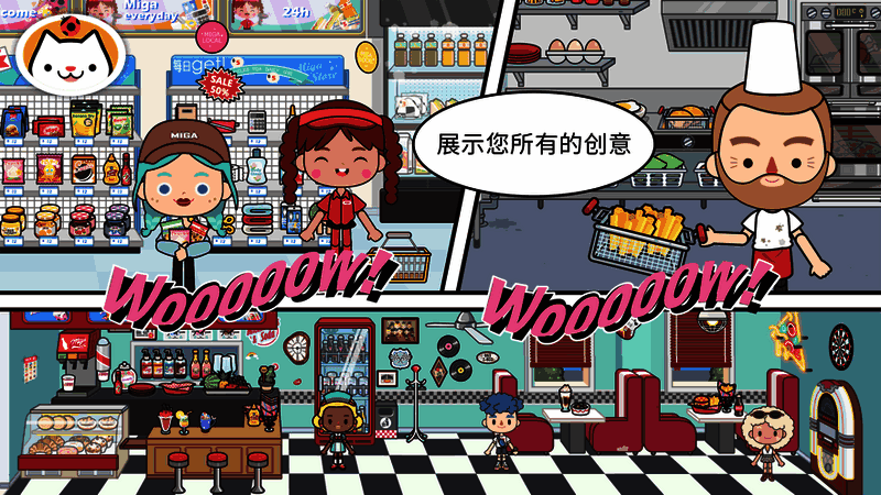 米加小镇:世界(完整版)全部下载是一款风格可爱的小镇模拟生活游戏。游戏设计的地图极其丰富。玩家不仅可以在时装店自由装扮自己的角色,还可以逛超市,探索不同类型的商品区。玩家还可以在游戏中根据自己的想法自由布置温馨的小窝,内置多种建筑风格,还有海量的家具和室内装饰供你搭配。感兴趣的朋友不要错过下载米加小镇:世界。