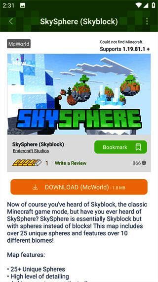 1.支持快速搜索,一键将模板和地图导入我的世界,非常紧凑。