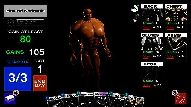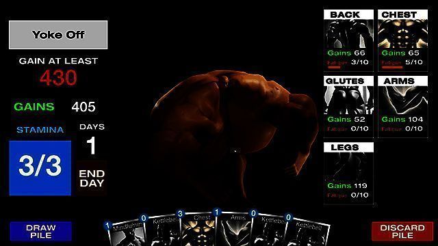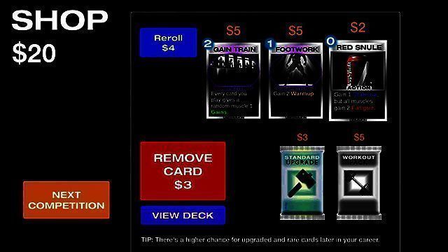 1、在游戏中,玩家主要通过打出卡牌来进行健身训练,每张卡牌的使用都会消耗左侧显示的能量值。
