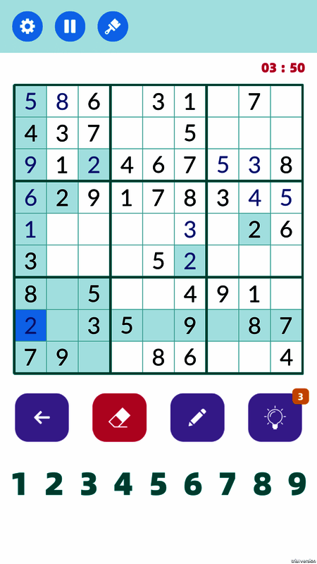 2、高难度数独挑战:提供丰富的数独挑战关卡,每个关卡都经过精心设计,保证挑战的充分性,满足您对高难度谜题的追求;