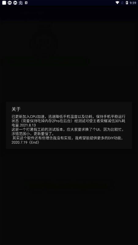 4、点击加速后需要挂在后台哦,手机发烫过与严重建议多次点击,可以通过CPU检测软件和耗电工具直观看到本软件效果;