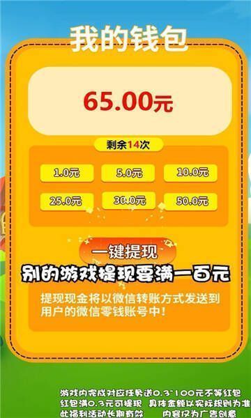 3. 玩家在游戏过程中可积累红包,达到一定金额后能提现至微信。