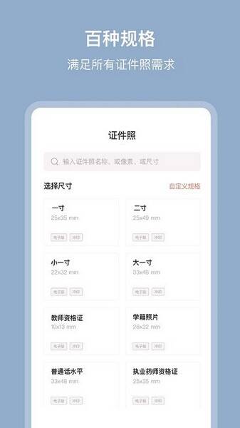 1.丰富的服装选择:提供男装、女装、童装等多种款式的服装,用户可以根据自己的需要自由调整证件照尺寸;