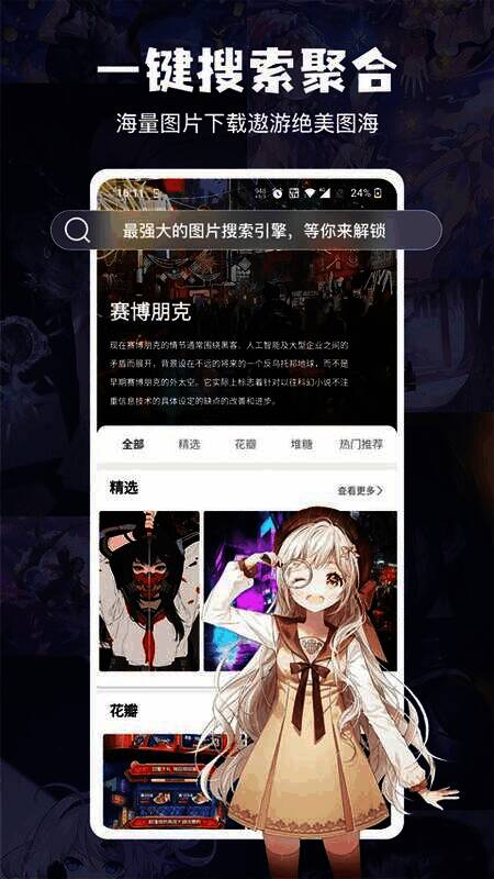 搜图神器免vip识图软件是专业移动应用,有海量高清美图,分类丰富。可按需制作壁纸、调整颜色,能随时分享。每日更新,有多种风格,可一键收藏、设为锁屏,增添社交氛围。