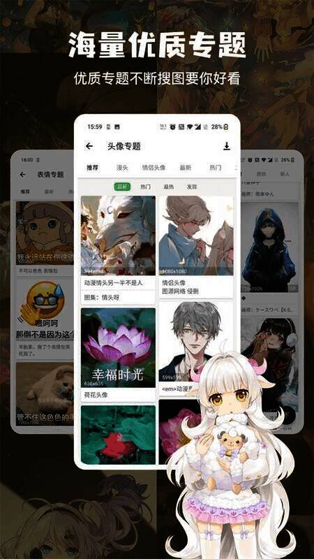 3. 游戏内有诸多以美女、动漫等为特色的壁纸和头像,也能选本地图片作封面。