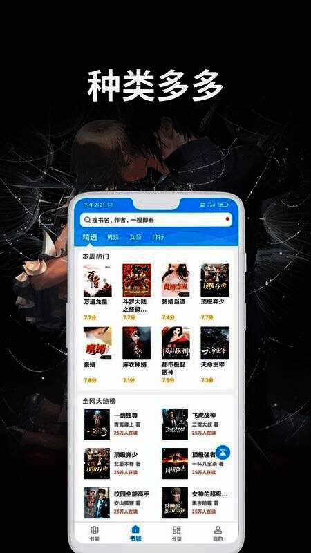 2. 海量小说资源与多样化体裁一站式呈现。