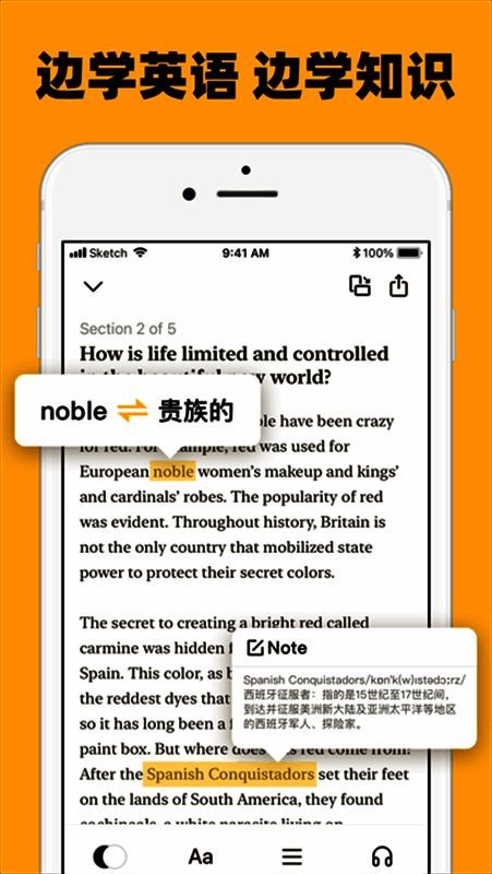 3、高效的学习工具:内置词汇列表、笔记功能、高亮工具,方便用户在阅读过程中积累词汇、整理思路。