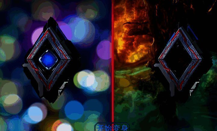 按下亚刻魔方上的按钮启动亚刻魔方,装入亚刻觉醒器后,通过变身器照射使魔方发光,双方音效联动发动音效,再进行纵横调整,即可发动亚刻奥特曼的变身音效。