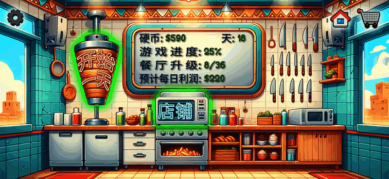 沙威玛游戏独特的“动态烹饪系统”让操作充满策略性。切肉时要控制好刀工节奏,避免产生碎屑浪费;涂抹酱料时,需依据顾客的喜好调整用量;卷饼时更要兼顾食材比例和美观度,稍有差错,就可能得到“肉片掉落”或“酱汁溢出”的差评。当你的沙威玛登上美食榜单首位时,那些曾经与你竞争的街角小店,都会成为你传奇之路的见证。