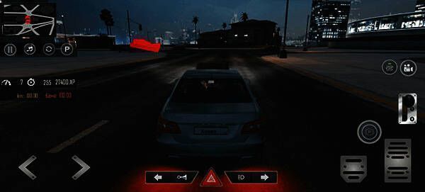 4、选好后即可开始驾驶车辆,驾驶前需打火,点击右边红色小圆圈,再长按黑色小圆圈发动车辆,车灯亮起即成功发动。