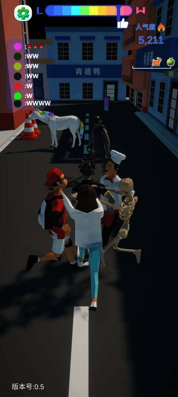 4. 游戏有角色建模和多场景设计,玩家将操控甲亢哥在保镖护送下穿梭于大街小巷。