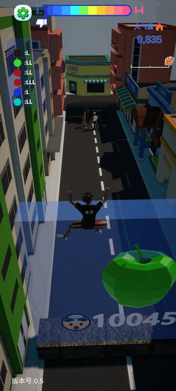 6、每隔一段区域会出现绿苹果,这是甲亢哥下播的暗语,此时进行后空翻需要足够的人气值。