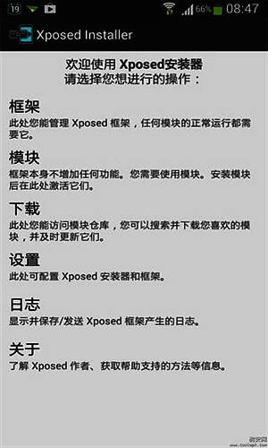 1、Xposed框架需Android 4.0.3及以上版本才能安装,目前不支持Android 4.4,后续版本可能支持。该框架安装需要ROOT授权,安卓高级应用通常都需ROOT权限,想畅快玩机就去ROOT。