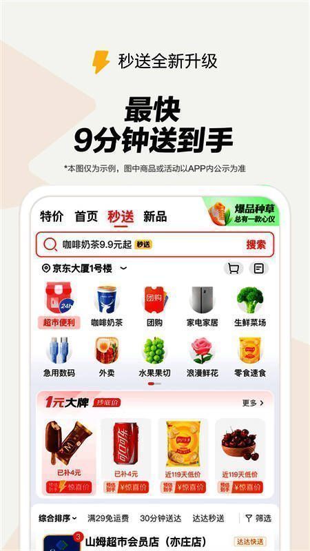 1、与京东生态无缝集成:无需独立APP,通过京东APP主页上的“秒送”栏即可直接进入外卖服务,整合即时零售和本地生活服务。