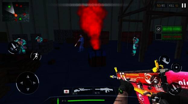 1. 游戏采用流畅的射击控制系统,玩家可通过虚拟按钮或手柄精准控制角色的移动与射击。