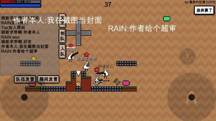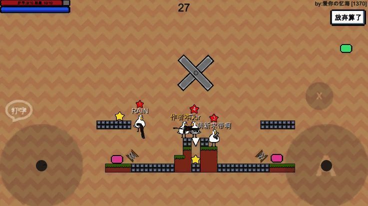 《动物干架》是一款超棒的射击游戏。玩家能操控可爱的动物角色与其他玩家对抗,游戏趣味性十足,能让大家享受极致的快乐。在游戏里,玩家可控制鸭子作战,界面左侧控制方向,右侧进行攻击、防御和跳跃。玩家要不断冒险赚取星星和金币,用来购买武器和角色。