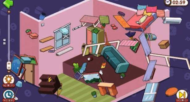 玩家需要对各种物品进行分类,如衣服、书籍、餐具等,并将其放置在适当的位置,轻松完成考验;
