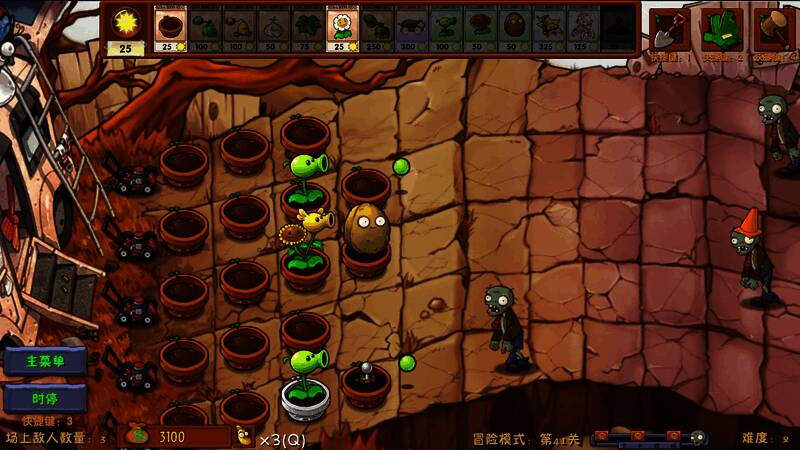 2.你可以随时进入关卡,初始难度不是很高。只要你及时种植植物,你就能轻松击败僵尸。
