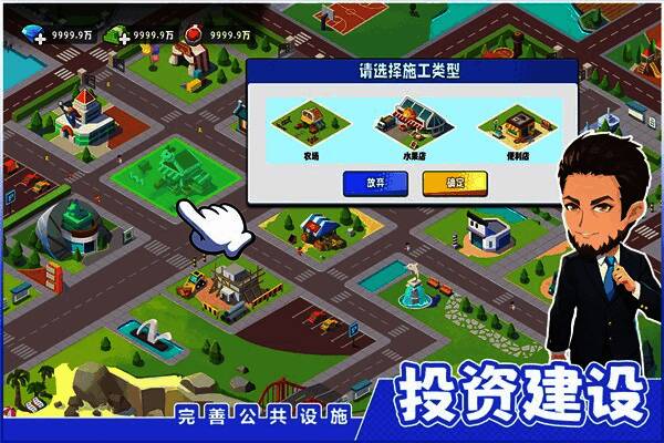 说回游戏,在《商业都市》中,你的首要任务就是疯狂赚钱。投资各大产业,开铺造厂,买地造楼,扩大商业版图。