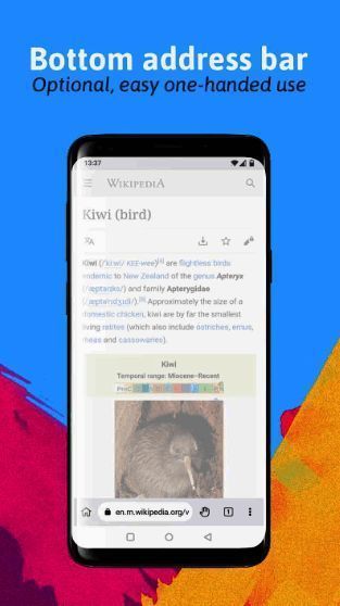 Kiwi浏览器官方版是一款基于Chromium内核的轻量级手机浏览器,秉持简单、高效、安全的设计理念,旨在为用户带来卓越的上网体验。它具有网页加载快、操作流畅、扩展功能丰富等优势,成为众多用户的心仪之选。该浏览器支持各类扩展插件,用户可按需安装以增强功能。