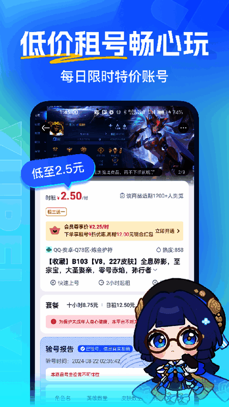 虚贝租号一元租号是一款操作便捷的安卓号码租赁服务软件,它为用户提供众多游戏租赁服务,涵盖CF、LOL、DNF、绝地求生等热门游戏,还有全新的steam和wegame新游账户出租。用户能依据账户设备介绍直接挑选。该软件旨在打造专业、优质、信誉佳的号码租赁平台,让玩家低价租到心仪账户。