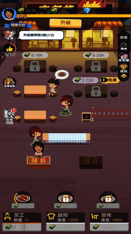 1. 任务和升级系统:完成任务可升级并解锁新内容,如餐厅装修和新菜品。