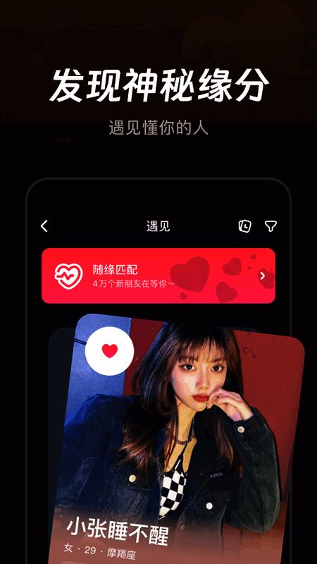2. 实时在线聊天,依缘分匹配同道之人,邂逅惊喜。