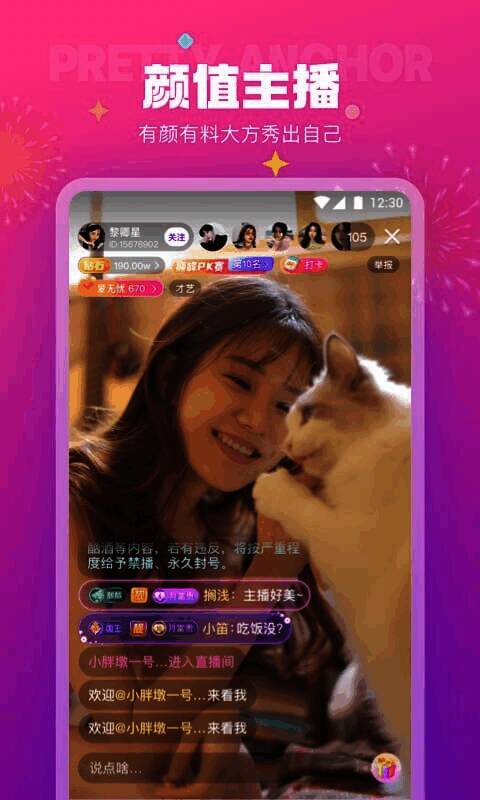 1. 精选全球高颜值主播,直播间视频聊天画面高清无卡顿,直播互动自然,随时可开启直播。这是一款暖心的真人直播软件,也是高审美、高人气的直播平台。