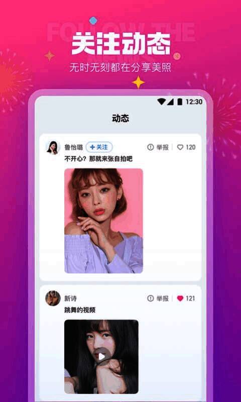 2. 这里汇聚你喜欢的一切,有精彩的内容直播和无尽的趣味集锦,每天都有新惊喜。恋爱、约会、城市聊天、与陌生人有趣的视频互动,乐趣无穷。是高人气的视频直播聊天交友平台,能结识同城陌生人,体验全新交友方式。