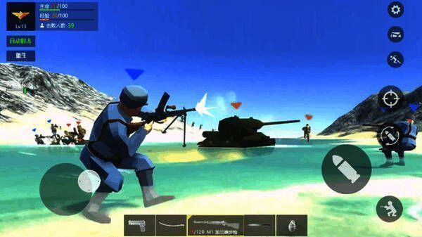 手持钢枪武器,在战场上与日军激烈交火,释放强大火力。