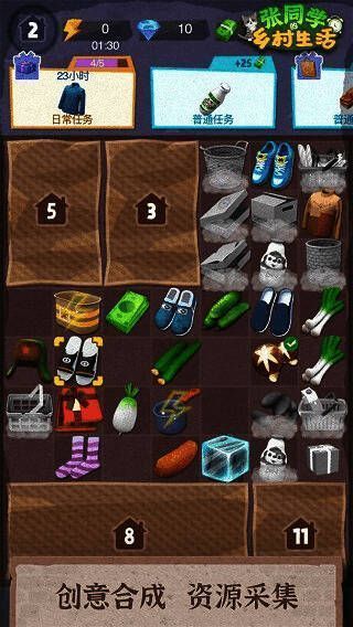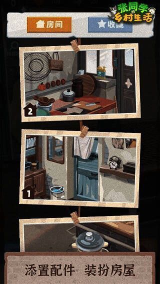 《张同学的乡村生活》是一款新颖有趣的模拟类游戏。游戏画面设计极具年代感,人物、场景、建造等元素都能让玩家仿若置身于乡村之中。玩法以经典的合成元素为主,提供了衣柜、床铺、墙贴等丰富的精品家具部件供玩家挑选。游戏的任务系统休闲有趣,玩家只需动动手指,通过合成、升级就能领取钞票,解锁更多道具来布置房间。