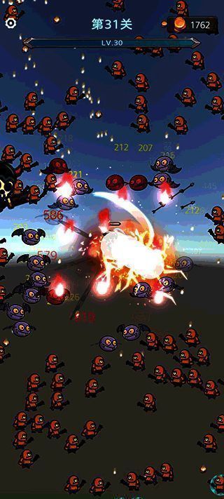 游戏的核心玩法围绕“割草清怪”展开,玩家可以操控角色释放强大的范围技能,在战场上实现一人横扫千军的爽快感。每局游戏都会随机刷新技能组合,玩家可自由搭配诸如“子弹+1”、“冷却缩减”等增益效果,形成多样化的流派构建,大大增强了战斗策略性和重复可玩性。