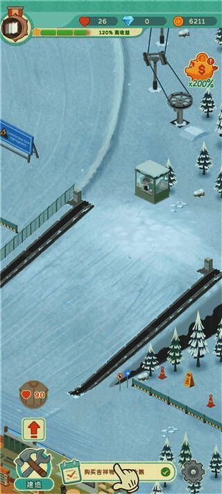 按流程推进游戏,完成任务领奖励,提升滑雪场质量。