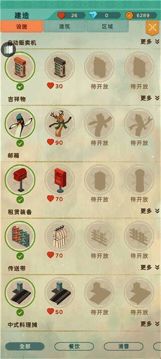 从零建设,完成任务解锁功能,点击互动吸引游客,离线挂机获收益。
