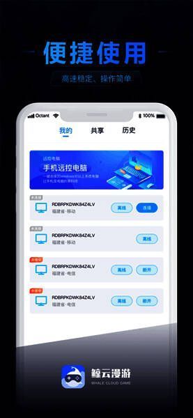 1. 鲸云漫游2025最新版用户能免费在线玩各类大型3D游戏,无需下载安装,延迟极低,即点即玩。