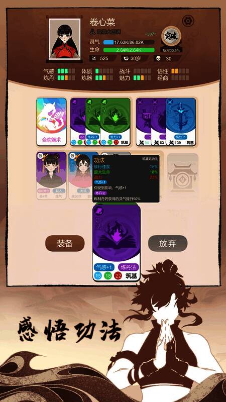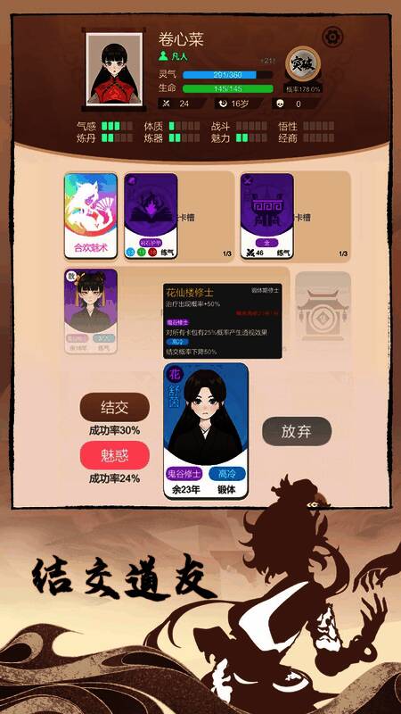 1、属性:主要注重魅力和炼丹,魅力可高概率获得好词条伙伴,炼丹能得到高品质突破丹。