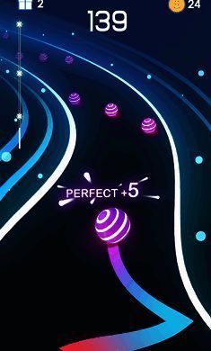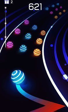 跳舞之路玩法简单,玩家控制小球撞击同色球得分,音乐至关重要,需跟节奏才能拿高分,游戏有众多歌曲,可按意愿跟随屏幕节奏加速或变向。